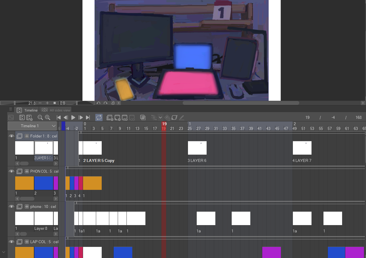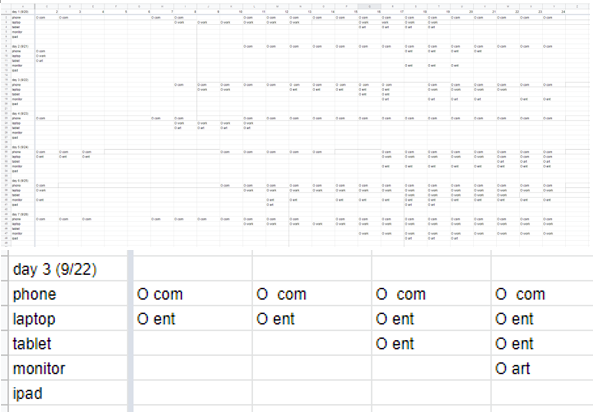 Tracked personal device usage over the course of a week ✦ Conceptualized and digitally painted visual representation for my data ✦ Created frame-by-frame animation to represent data over time