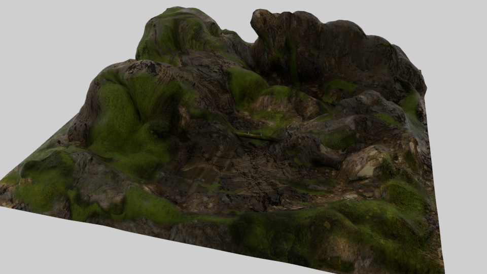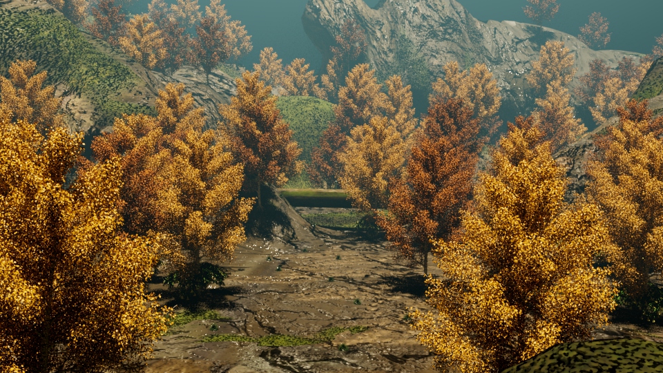Created terrain in Maya ✦ Created dirt texture in Substance Designer ✦ Textured terrain in Substance Painter ✦ Laid out foliage (provided assets) onto terrain and added environmental effects in Maya