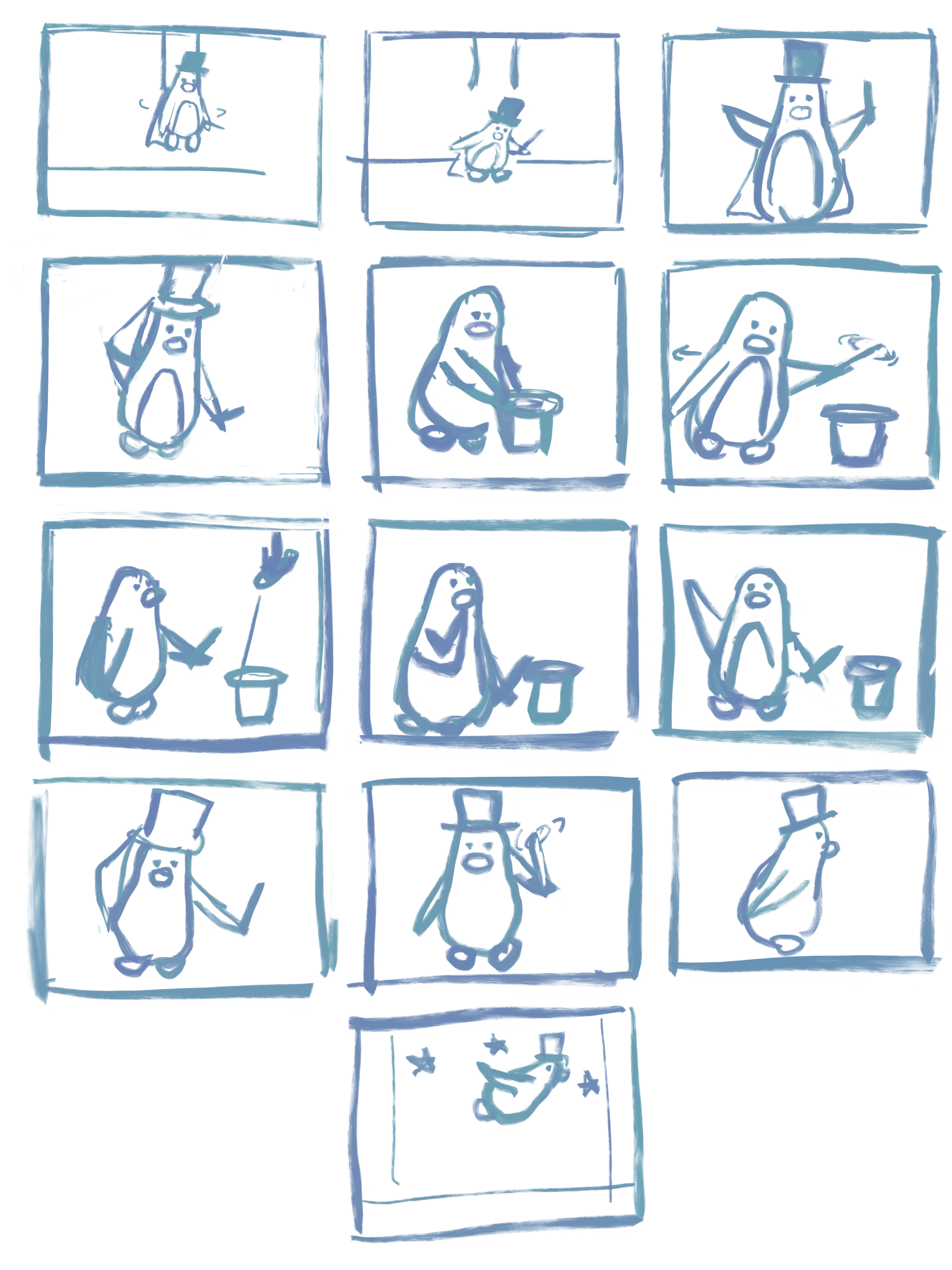 Designed character and storyboarded animation sequence ✦ Modeled and rigged penguin character and props in Maya (stage provided) ✦ Animated scene in Maya ✦ Compiled rendered sequence and added sound effects in After Effects